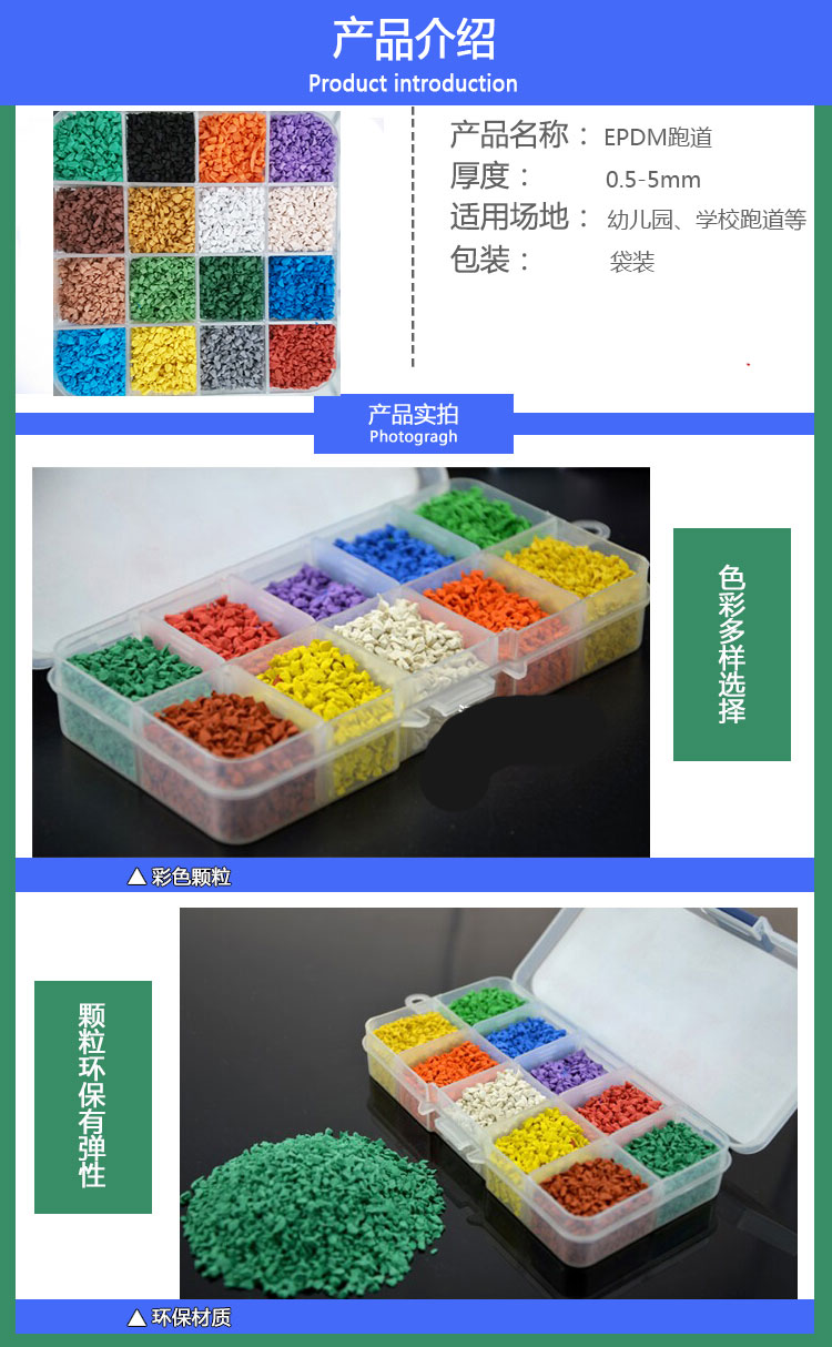 EPDM颗粒是一种专业户外环保的篮球场材料,一般可以做在水泥地及沥青表面。塑胶篮球场有弹性球场和硬性球场两种,