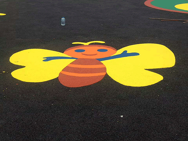 1,漂亮的EPDM彩色颗粒篮球场地,可设计成五彩缤纷的图案且地垫接缝处难以处理的缺陷,整体感强。