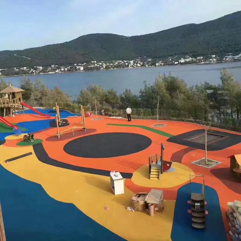 4、使用寿命长,专业塑胶篮球场材料,球场寿命可以达到8-15年;