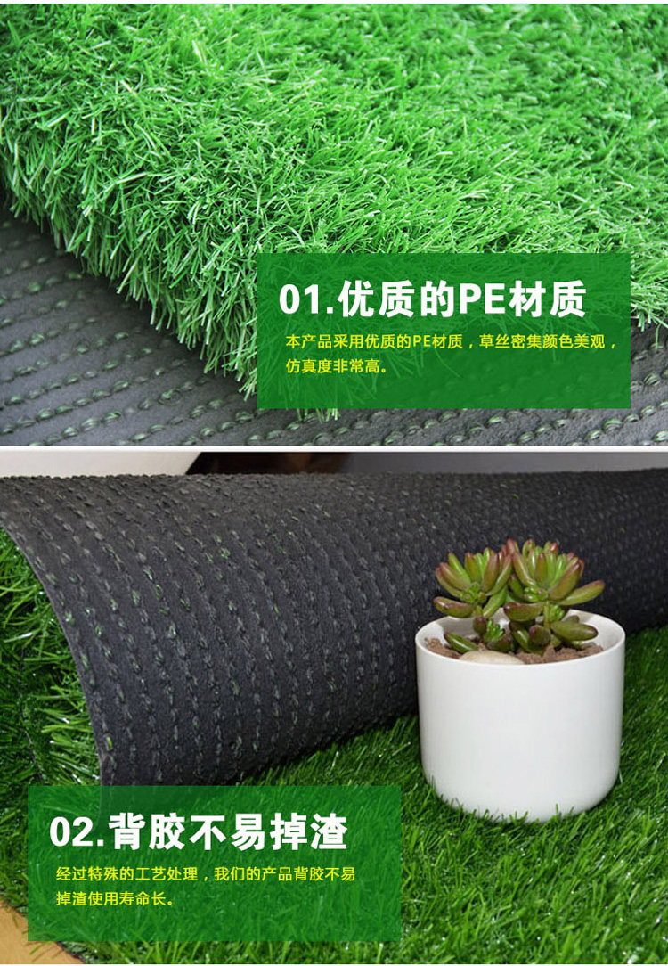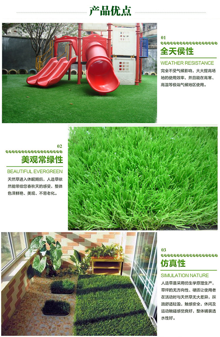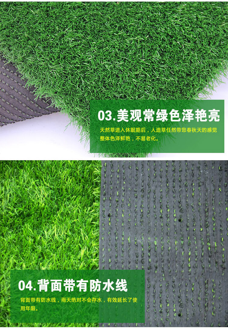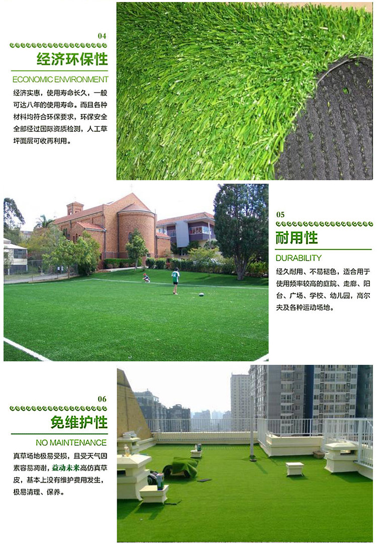 人造草坪,单纯从照片上很难看出哪个质量好,但是价格到底差在什么地方呢?围挡人造草坪的草丝没有加抗老化的成分、所以容易褪色风化,另外它是用2m宽的小机器编织的、工人手工涂胶,制造成本低、而且这种生产工艺会让草坪不耐磨、容易脱落;幼儿园专用人造草坪多是用4m进口大机器编织的,遇到这样的产品怎么分辨呢?