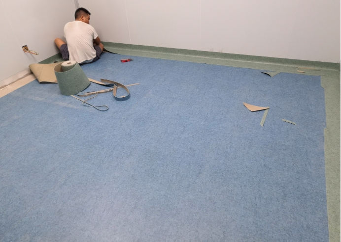 2.乒乓球地胶在铺设之前,必须提前展开平铺在铺设地面24小时以上,且现场温度不应低于15℃。地板还原后,切割时两端应多留5cm。